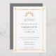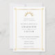 Elegant and simple wedding invitation with a faux gold art deco frame and a stylistic art deco sun. White background with a grey back.
