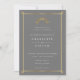 Elegant and simple wedding invitation with a faux gold art deco frame and a stylistic art deco sun. Grey background.