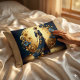 This stunning art deco illustration captures the timeless elegance of a poised woman in a flowing navy-blue gown adorned with intricate gold floral embellishments. Framed by a luxurious golden arch with ornate decorative patterns and delicate blue and gold flowers, the composition exudes sophistication and vintage glamour. The harmonious blend of rich colours and fine details creates a sense of refinement, making it a perfect choice for lovers of floral fantasy design and luxury vintage artwork. The woman's graceful posture and the interplay of light and shadow enhance the dreamy, ethereal quality of the piece, while the intricate embellishments evoke the charm of a bygone era. Infused with elements of sophisticated fashion art and glamourous retro style, this digital painting radiates elegance and grandeur. A mesmerising fusion of past and present aesthetics, this piece is perfect for those who appreciate timeless beauty with a modern artistic twist. AI generated artwork.