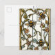 Elegant art nouveau botanical bee stain glass postcard