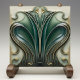 Embrace the timeless elegance of Art Nouveau with this exquisite ceramic tile, featuring a stylised iris bloom design that captures the essence of the movement's organic forms and intricate contours. The serene aquamarine background harmonises with the delicate shades of mint green and seafoam, accented by the sophisticated outlines in antique bronze and subtle touches of teal. This decorative piece, with its glass-like glossy finish, evokes the classic stained glass artistry, offering a sophisticated accent for any room. Measuring a square shape, this printed tile brings a touch of historical charm without the need for relief, perfect for collectors and decorators seeking a blend of modern craftsmanship and vintage aesthetics.