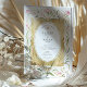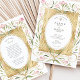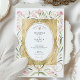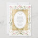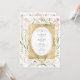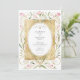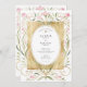 Provide your guests with all the essential information in style with this exquisite Art Nouveau-inspired wedding invitation card. This beautiful design features a symmetrical frame of elegant, flowing stems and stunning watercolor lilies. The flowers are painted in warm, vibrant shades of pink and soft red, which pop against the lush sage green foliage. A classic oval, accented with a delicate golden stitched border, provides a lovely space for your text. This card is perfect for sharing accommodation details, directions, your wedding website, and other fine points. It's the ideal complement to a sophisticated, artistic, or romantic garden wedding suite.