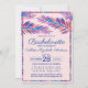 This elegant and artsy wedding bachelorette party invitation is the perfect design for your summer or spring outdoor, backyard, or beach event. It features a hand-painted purple, coral pink, burnt metallic orange, and cobalt blue acrylic tropical leaves on top of a cool and artistic acrylic border displaying the same colour scheme, all on top of a simple blush pink background. It's unique, contemporary, bohemian, and stylish!