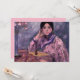 This design features a painting by the Japanese Impressionist artist Fujishima Takeji (1867–1943). It shows an elegant Asian lady wearing a traditional kimono that is mainly pink and purple with a black pattern. She is resting against a table on which a small perfume bottle is placed. There is also a vase of pink roses on the table. It is an image of restrained luxury and elegance.