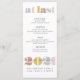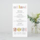 Add a touch of modern elegance to this years New Years celebration with this menu card. The simple design features AT LAST 2021 in a modern typography in a palette of gold and silver. The template is created for a four course meal. Personalise with your family name. The reverse side is in a coordinating gold colour.
