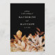 This elegant wedding ceremony program features beautiful watercolor floral illustrations in earth tones on a chic black background with ivory typography. Together these elements create an elegant wedding program that would be perfect for a autumn wedding. This design coordinates with our Elegant Autumn wedding suite (see the collection for more).