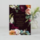 This elegant autumn wedding invitation features real gold foil calligraphy script with a floral border of burgundy, orange, white, and blush pink roses with eucalyptus. The back of the card is dark burgundy. Congrats on your upcoming wedding! Designed by Susan Coffey.