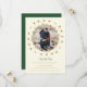 The romance of autumn is captured in this save the date. Fall leaves cascade down the card in a flurry of reds, oranges, and golds against a cream background. Oak and maple leaves are prominently featured. A deep forest green adds contrast to the back and sets off a customisable monogram. Fall is in the air with this elegant suite.