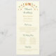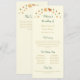 The romance of autumn is captured in this wedding program. Fall leaves cascade across the top of the card in a flurry of reds, oranges, and golds against a cream background. Oak and maple leaves are prominently featured. Add your wedding ceremony information to the front and add reception information on the back. Fall is in the air with this elegant menu.