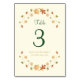The romance of autumn is captured in this table number. Fall leaves cascade down the card in a flurry of reds, oranges, and golds against a cream background. Oak and maple leaves are prominently featured. Customise your name and date on both sides. Fall is in the air with this elegant suite.