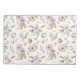 This design features a delicate fall-themed watercolor pattern. The design includes soft and muted tones of pumpkins in shades of white, blue, and light orange, accompanied by an assortment of autumn leaves in various shades of yellow, orange, and brown. Scattered among the pumpkins and leaves are gentle floral elements and sprigs of greenery, all arranged on a clean, white background. The overall aesthetic is light, airy, and evocative of the serene beauty of the fall season.