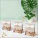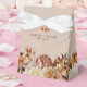 This elegant fall wedding favour box features hand-painted watercolor burnt orange and terracotta leaves, cream and beige dahlias, and beautiful rust-coloured roses on a taupe background with the bride and groom's name and wedding date in brown text. Find matching items in the Taupe Autumn Romance Collection.