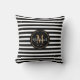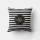 Elegant Awning Stripes Black White Name Monogram Cushion