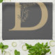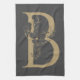 Elegant B Boho Floral Monogram Initial Grey Gold Tea Towel