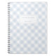 Customise the front of this notebook with your name, business name, etc. This design features a baby blue plaid pattern and modern typography.