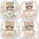 Enhance your crafts, gifts, and stationery with this set of four stickers featuring a charming baby racoon sitting in a luxurious teacup adorned with intricate gold details and surrounded by soft floral accents. Perfect for racoon lovers and fans of whimsical, elegant designs, these stickers capture a romantic and enchanting vibe. Ideal for scrapbooking, gift wrapping, or decorating notebooks and letters, they add a touch of magic and sophistication to any project. These high-quality stickers are perfect for holiday occasions, birthdays, or simply spreading joy.