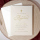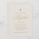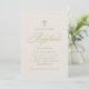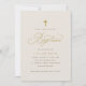 Elegant Baptism Beige Champagne Script Cross Invitation