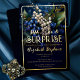 Elegant baroque style dark and moody blue and white floral "SURPRISE" birthday party design. Features dramatically elegant white lily of the valley flowers and dusky blue hawthorn flowers with lush dusky green greenery on a multi-tonal teal to darkest blue background. Add to this the luxury of real gold foil, and you have a birthday celebration that is at once sophisticated and timelessly elegant, but also dramatically modern.