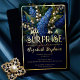 Elegant baroque style dark and moody blue and white floral "SURPRISE" birthday party design. Features dramatically elegant white lily of the valley flowers and dusky blue hawthorn flowers with lush dusky green greenery on a multi-tonal teal to darkest blue background. Add to this the luxury of real gold foil, and you have a birthday celebration that is at once sophisticated and timelessly elegant, but also dramatically modern.