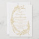 This is a timeless romantic baroque Victorian regency-era wedding card design, with an elegant vintage/antique gold chinoiserie floral wreath against an off-white, neutral-colour background.