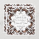 / An intricately designed square frame with ornate patterns. The frame is symmetrical, with a central floral motif surrounded by elaborate swirls and curls. The colour palette consists of white and gold, with the gold accents highlighting the central motif and the white providing a contrasting backdrop. The frame appears to be three-dimensional, with depth and texture evident in the craftsmanship.