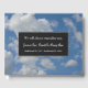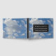 This minimalist funeral/memorial remembrance guestbook features the message "We will always remember you,", and the personalised name and birth/death dates of the individual who has passed away. It also features a grey and white clouds and blue sky background. It could be used to record condolences for the family and friends of somebody who has recently passed away.