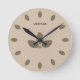 Modern bay tree leaves on light beige background Wall Clock. Text can be personalised.
