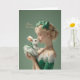 An exquisite birthday card featuring a graceful young woman in a green lace gown holding an adorable white bunny dressed to match. Rich textures, soft lighting, and classic fairytale charm create a timeless, enchanting design. Perfect for anyone who loves sophisticated artistry blended with a touch of whimsy on their special day.
