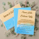 Modern coastal wedding invitation featuring soft blue ocean waves and sandy beige watercolor textures. Perfect for beach weddings, seaside ceremonies, summer weddings, and destination celebrations. Elegant script typography with a romantic aesthetic.