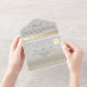 Simple, elegant, modern calligraphy, tropical beach wedding invitation with picture, ocean pattern and faux gold details.