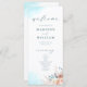 Introduce your guests to your special day with this stunning Elegant Beach Wedding Program. Featuring a serene watercolor design in blue, teal, turquoise, and peach, accented with delicate floral details, it perfectly blends boho charm with modern coastal elegance. Ideal for a beach wedding, this program adds a touch of sophistication while capturing the natural beauty of your seaside celebration.