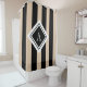 Elegant Beige Black Vertical Stripes Monogram Shower Curtain