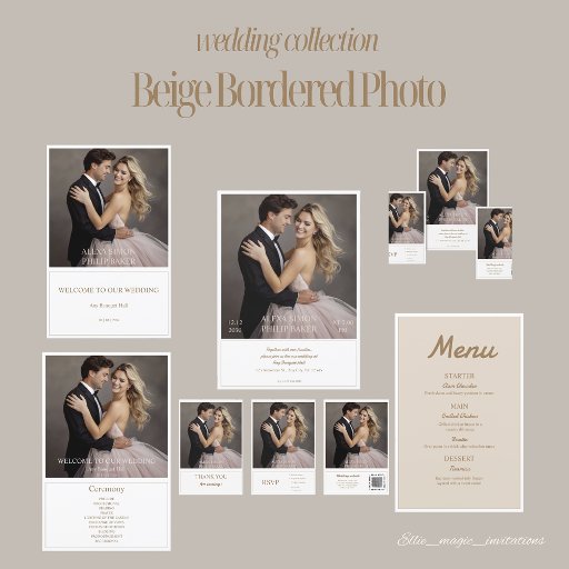 Elegant Beige Bordered Photo wedding Invitation