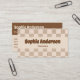 Make a lasting impression with this elegant and modern business card design featuring a soft beige background paired with a stylish brown checkerboard pattern. The bold, dimensional typography highlights your name, while the clean layout ensures your contact details are easy to read and professional.