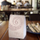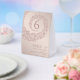 This wedding table number card radiates elegance and charm with a soft beige background paired with lush salmon pink damask accents. The ornate decorative frame is enriched with lace effects, creating a delicate and timeless feel. The central table number stands out clearly, surrounded by the intricate damask and lace-inspired border. The word “Table” is written in graceful calligraphy, adding a refined and romantic detail to the design.