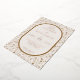 This elegant wedding invitation features a symmetrical layout with a large oval frame at the centre, bordered by delicate floral motifs in muted beige tones on a light cream background. The design combines classic serif fonts with bold script typography to highlight key details, creating a sophisticated and modern aesthetic. Gold accents add a touch of luxury, while the overall colour palette evokes warmth and celebration. Perfect for formal weddings, this invitation sets the tone for an unforgettable event.