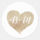elegant beige marble heart with monogram classic round sticker