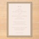 This elegant wedding invitation features a minimalist design with a soft beige background and subtle brown text, creating an understated yet sophisticated look. The layout is vertically aligned with ample margins, enhancing its balanced and spacious feel. A mix of serif and script fonts adds visual hierarchy and interest, while the absence of decorative motifs keeps the focus on the refined typography. Perfect for couples seeking a classic and formal aesthetic, this invitation conveys a mood of understated elegance, ideal for celebrating a significant life event.