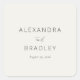 This wedding sticker features a minimalist design with a clean, centered layout on a plain background. The monochromatic color palette includes shades of light beige and black text, creating an elegant contrast. The typography combines bold serif fonts for the names with a delicate script font for "and," adding sophistication to the modern aesthetic. Perfect for formal occasions, this sticker conveys simplicity and refinement, making it ideal for weddings or significant announcements.