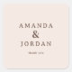 This wedding sticker features a minimalist design with a light beige background and a centred layout. The text is arranged in three lines, using bold serif fonts for the names and a smaller sans-serif font for "thank you," creating an elegant contrast. The muted brown colour palette adds warmth and sophistication, making it perfect for expressing gratitude at your special event. Its clean and classic style ensures versatility, suitable for various wedding-related occasions.