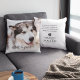 A modern personalised pet memorial pillow that is stylish and can be displayed with love and pride in your home. Featuring a photo of you and your beloved pet with elegant calligraphy text 'best dog ever'. On the reverse reads a sympathy quote "your life was a BLESSING, your memory a TREASURE, your are LOVED beyond words, MISSED beyound measure" a cute paw print with heart, a tribute, your dogs name, and the dates. Makes a wonderful keepsake gift of your precious family pet dog. Text can easily be personalised.