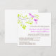 This elegant and romantic design features two bright violet purple birds in a delicate branch with lime green leaves. The wording is in brown with the bride & groom's names in purple that matches the birds on the branch.