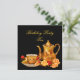 Black Red Gold Roses Tea Teapot Teacup Floral Elegant Birthday Party invitation. RSVP available. Customise with your own details. 40th, 50th, 60th 21st, 30th.