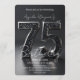 Celebrate a monumental 75th birthday with this sophisticated and modern design featuring a stunning 3D black and silver glitter graphic. The sleek, dark charcoal background creates a high-contrast, elegant look that makes the metallic numbers pop, perfect for an evening gala, a dinner party at a pavilion, or a luxury milestone event. This design captures a sense of glamour and prestige, making it ideal for the honoree who loves a touch of sparkle and high-end style. Ensure your guests are impressed from the moment they open the envelope with this chic, sparkling milestone layout. Perfect for both men and women celebrating their diamond-year festivities.