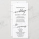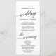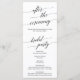 This elegant black after ceremony wedding program is perfect for a simple wedding. The neutral design features a minimalist card decorated with romantic and whimsical typography. Include the name of the bride and groom, the wedding date and location, thank you message, order of service, cocktail hour info and bridal party.
