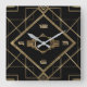 Elegant black and gold art deco square wall clock