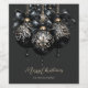Elegant black and gold Christmas design with luxury Christmas baubles with ornate decoration, satin bows and golden chain and personalised text.