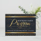 Modern Simple Birthday Party Program featuring gold and black background, calligraphy script ''program'' and all party details in modern lettering.Perfect itinerary for your guests. All text can be personalised.