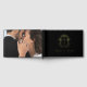 Add a personalised, romantic touch to your wedding ceremony or special event with this Elegant Black and Gold Foil Chinoiserie Victorian Floral photo wedding guest book. The timeless wedding guest book features an intricate gold foil chinoiserie crest surrounding the couple's monogram initials with a black background. Your names are displayed in a classic gold foil calligraphy script with your wedding date below. Add your married name, wedding date, or other custom text to the spine of the gold foil guest book. The back of the chinoiserie guest book features your horizontal photo.