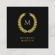 Elegant Black and Gold Laurel Wreath with Monogram Square Business Card
